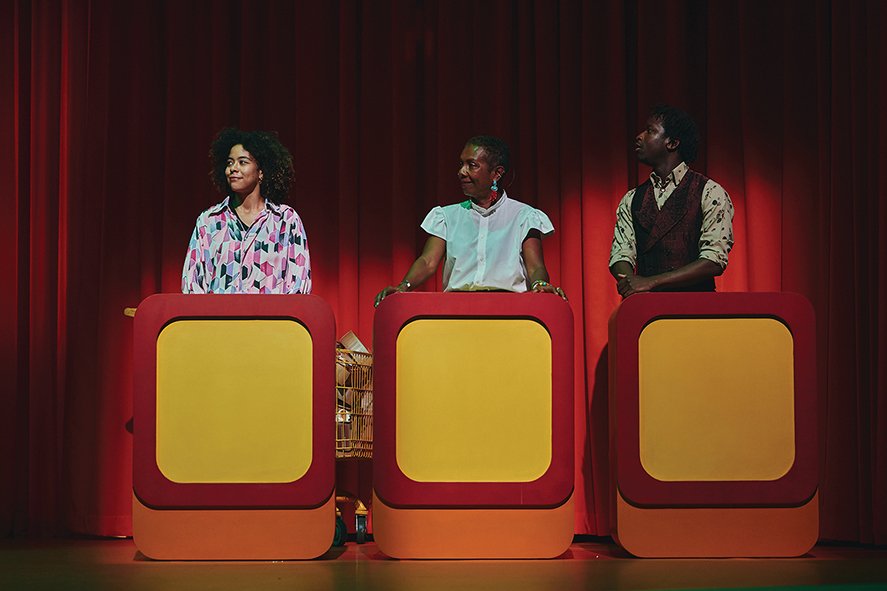 O mote para esta peça de humor que aborda questões fracturantes latentes na Europa e, em particular, na sociedade portuguesa, é claro: em 2025, nos 50 anos da independência de quatro dos cincos países africanos colonizados por Portugal (Angola, Cabo Verde, São Tomé e Príncipe e Moçambique), será que as desigualdades que aconteceram no passado se perpetuam no presente? Referimo-nos ao tratamento que possuem as pessoas destas nações ou com outra ascendência africana que vivem no nosso país, bem como as consequências das guerras e genocídios que ocorreram um pouco por todo o continente. É esse o centro de “Reparations Baby”, uma criação que traz para o palco o dispositivo televisivo, um formato que, por si, estabelece de imediato a tonalidade da peça. É uma forma de dar a ver aquilo que é a realidade geral do entretenimento e de uma suposta cultura que privilegia as identidades das antigas metrópoles como Portugal.